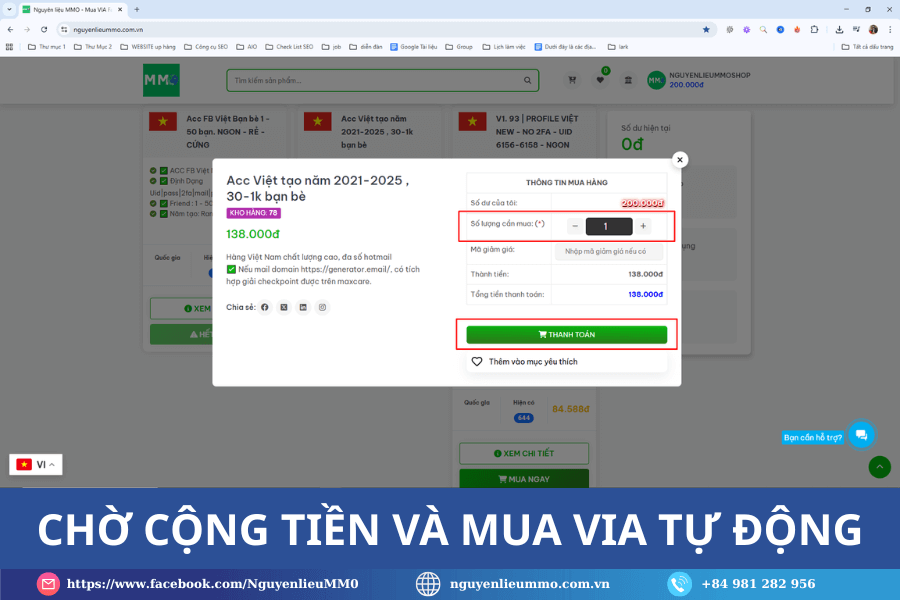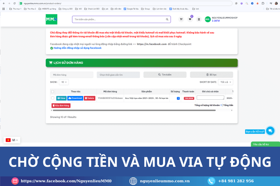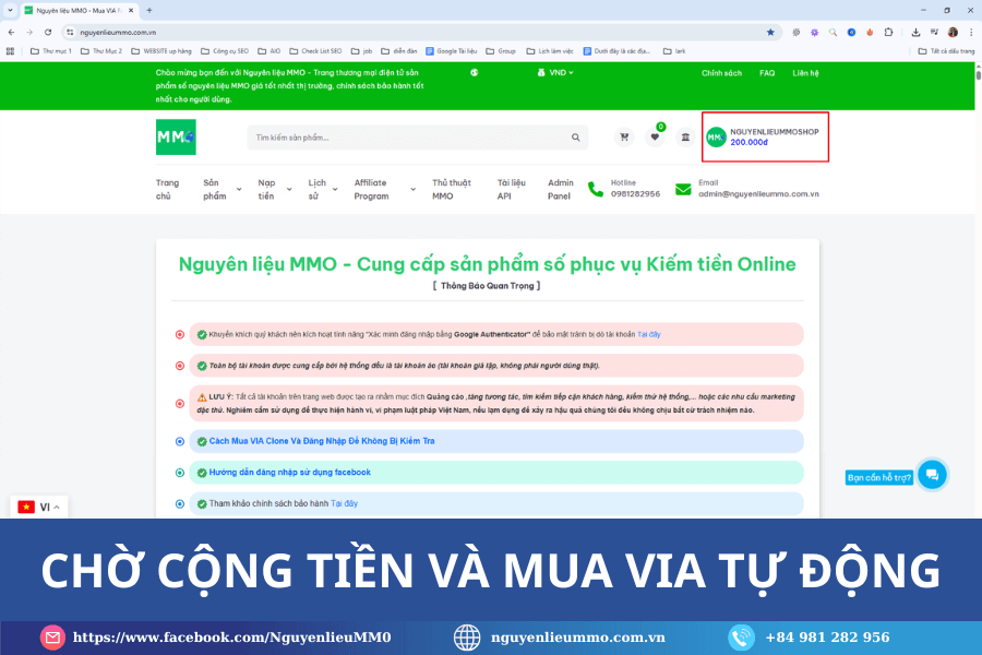 Hiện nay, có rất nhiều anh em cần mua via để chạy quảng cáo, seeding, hay nhu cầu khác. Tuy nhiên lại không biết cách để mua sao cho nhanh và tiện lợi nhất. Hôm nay Nguyên liệu MMO xin phép được chia sẻ cách để có thể giao dịch hoàn toàn tự động trong 1 phút - vô cùng tiện lợi và an toàn.