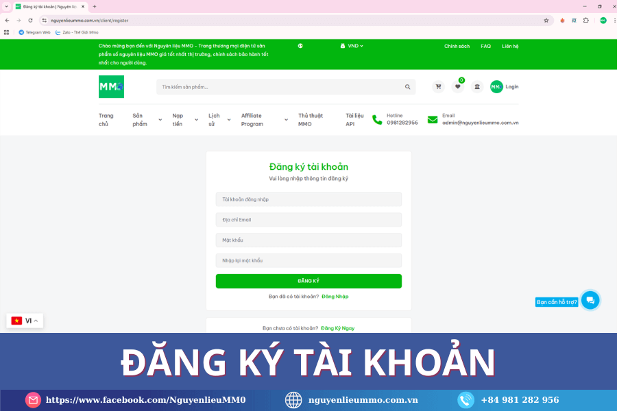 - Đầu tiền bạn truy cập vào link đăng ký sau: https://nguyenlieummo.com.vn/client/register