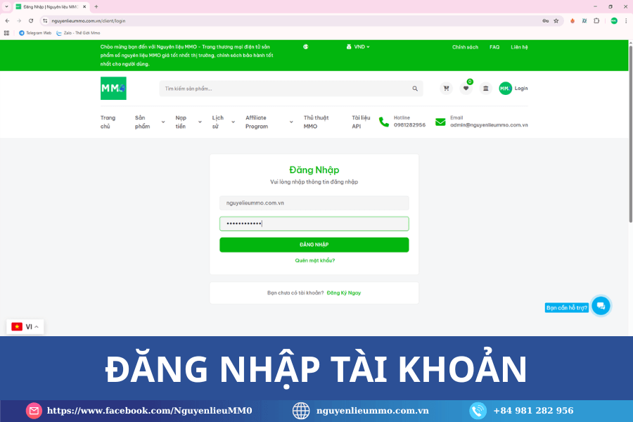 - Đăng nhập tài khoản tại link: https://nguyenlieummo.com.vn/client/login