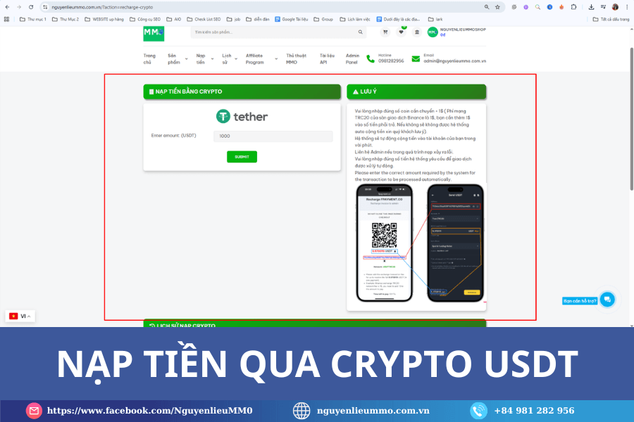 Cách 3: NẠP TIỀN QUA CRYPTO USDT